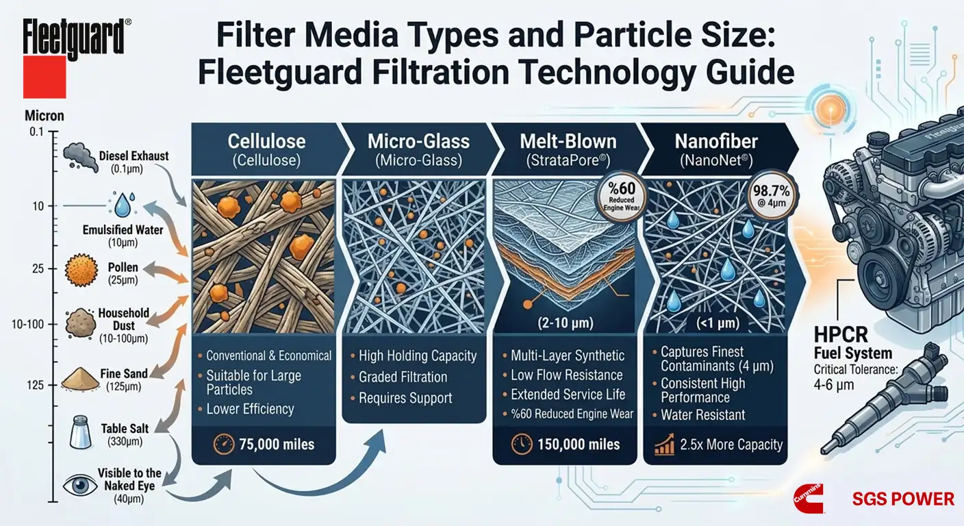 In modern diesel engines equipped with high-pressure common rail systems, particles as small as 4–6 microns can cause serious damage. This is why Fleetguard’s advanced media technologies like StrataPore and NanoNet represent the most sound investment for extending engine life and reducing total cost of ownership.